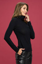 Meet The Raquel, a soft and breathable solid knit turtleneck made in the USA. Crafted with a premium blend of rayon and spandex, this top offers the perfect amount of stretch for a smooth, flattering fit. A timeless essential you can layer or wear solo.