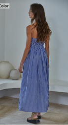 Crafted in a lightweight woven fabric, Promenade flows into a full, flared skirt that moves beautifully with every step. The classic blue-and-white stripe gives it a timeless, European-inspired feel—perfect for women searching for an easy summer maxi dress, a vacation-ready outfit, or a piece that transitions seamlessly from day to night.