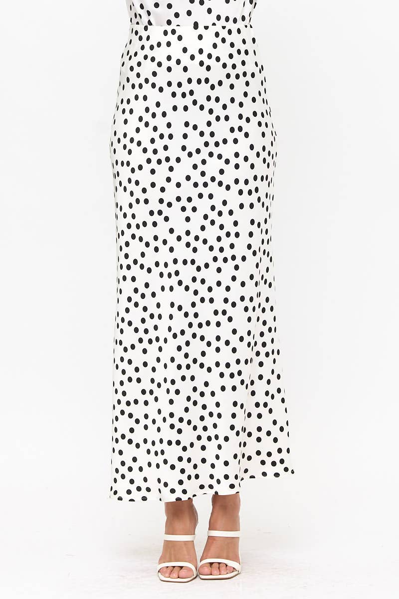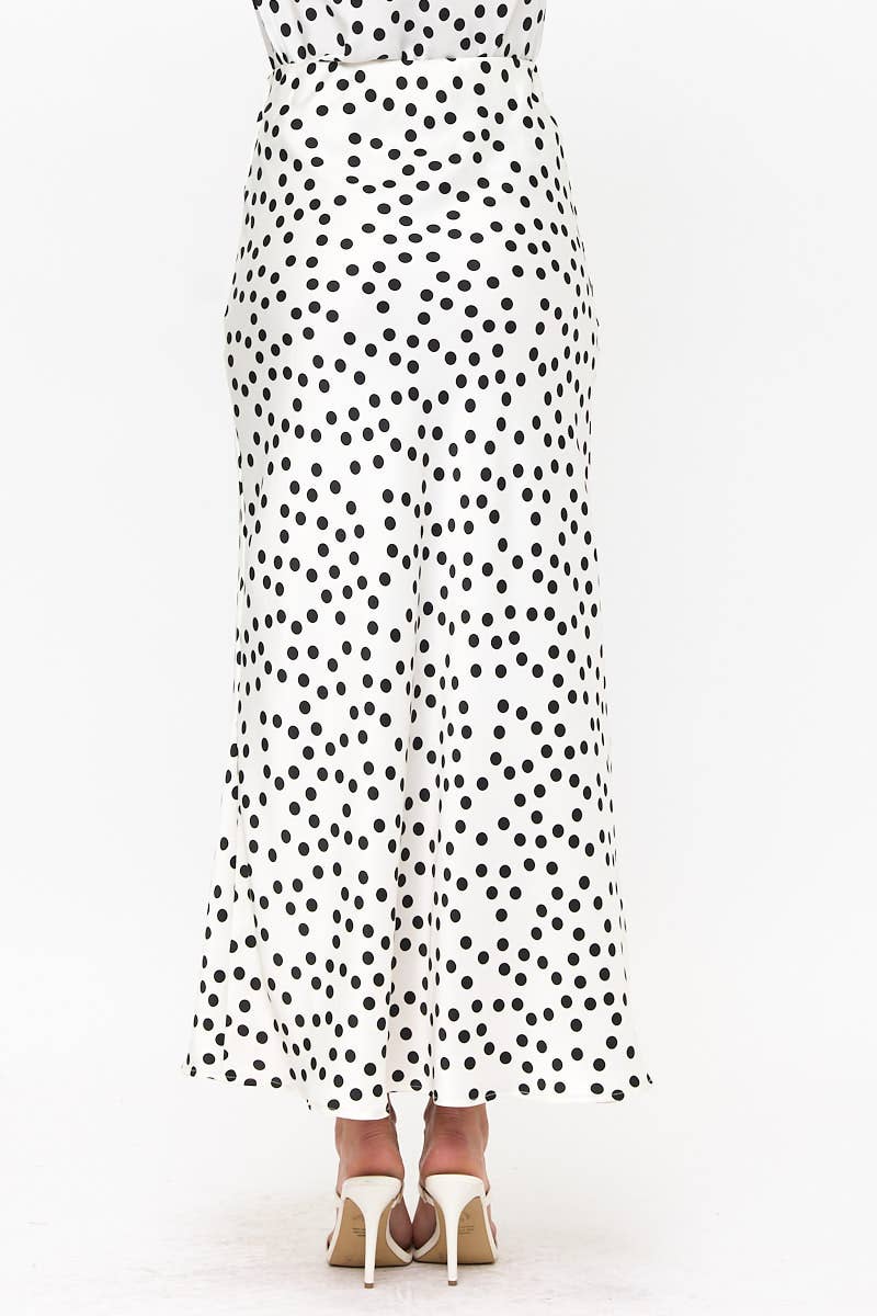 The Lila Polka Dot Satin Maxi Skirt